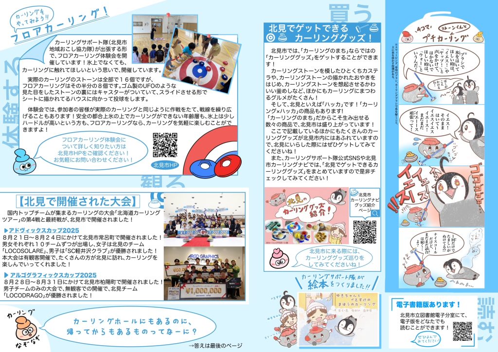 本フリーペーパーでは、北見のカーリング情報を掲載するほか、4コマ漫画等でカーリング豆知識を楽しく知ってもらえたらなと思っています☺️