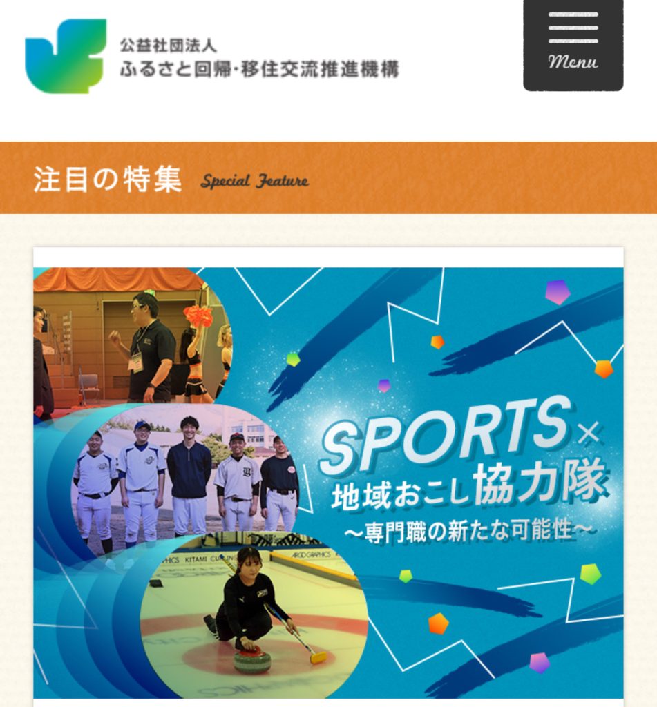 公益社団法人ふるさと回帰・移住交流推進機構Webサイトに掲載されている「スポーツ×地域おこし協力隊〜専門職の新たな可能性〜」ページにて、カーリングサポート隊の活動を掲載いただきました!🥌